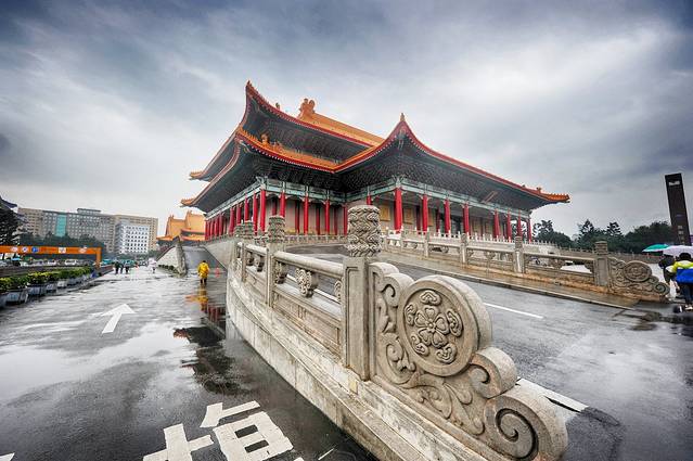 自由广场和中正纪念堂是连在一块儿的,纪念蒋公的纪念堂主体是一栋蓝顶白墙的中国传统建筑,纪念堂周围还有剧院及音乐厅,也都是古典宫殿式建筑,颇为富丽堂皇。