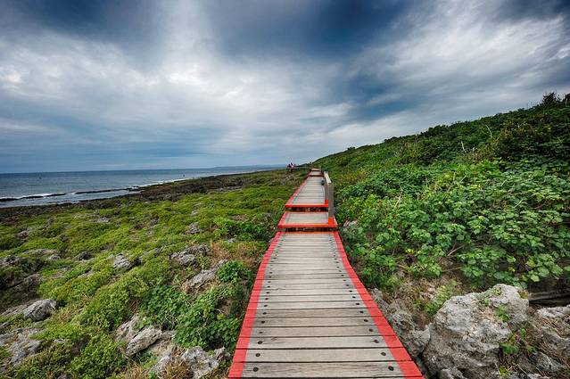 其实鹅銮鼻公园内不只有灯塔,沿着草坡一直下到海边,还有一条蜿蜒的滨海步道,这里是太平洋与巴士海峡的交界处,视野开阔,在步道上走走,非常不错。