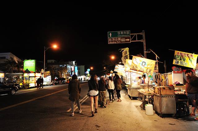 热情而又负责的老许把我们送回了酒店,事实证明我们选择住在垦丁大街上是无比正确的,即使是在垦丁的旅游淡季冬天,这条沿街摆满了各种美食小摊和特色商品小店的大街也是热闹无比。老许说台湾南部的美食比北部要丰富得多,在垦丁大街上从火焰牛排、烤鱿鱼到臭豆腐、芋圆各类台湾美食都能找到,街上到处都是来度假的年轻人。就算是在冬天,说话嗲嗲的台妹们依然上身裹着羽绒服,下身穿着热裤,光着两条修长白皙的长腿在街上溜达……嗯,确实是活色生香,活色生香啊。