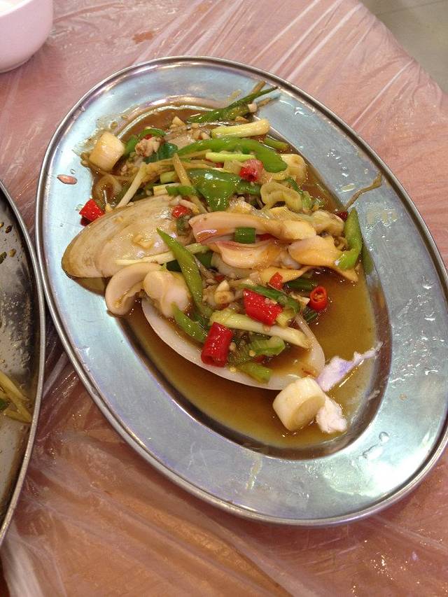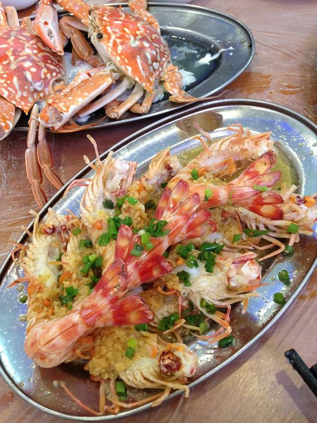 一位小妹带着咱买海鲜,虽然她的话带着浓浓的本地音,但语言细胞发达的偶还是听出了,她一直在还帮咱还价,好人啊!龙虾、和乐蟹、芒果螺、大竹蛏,二百多!加工费80,还有必不可少的芒果炒冰,上菜!