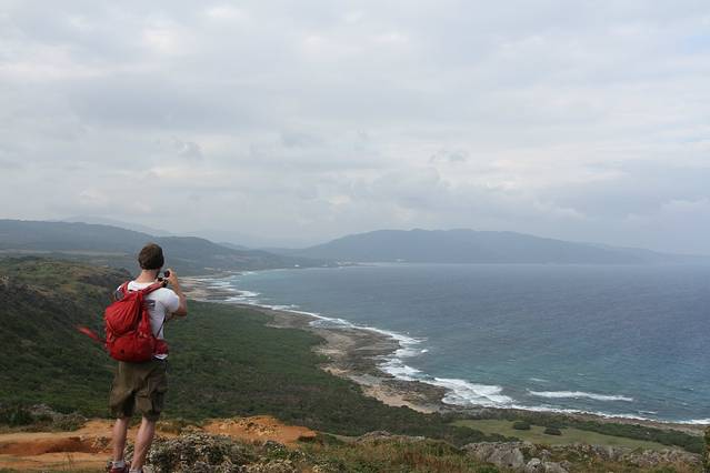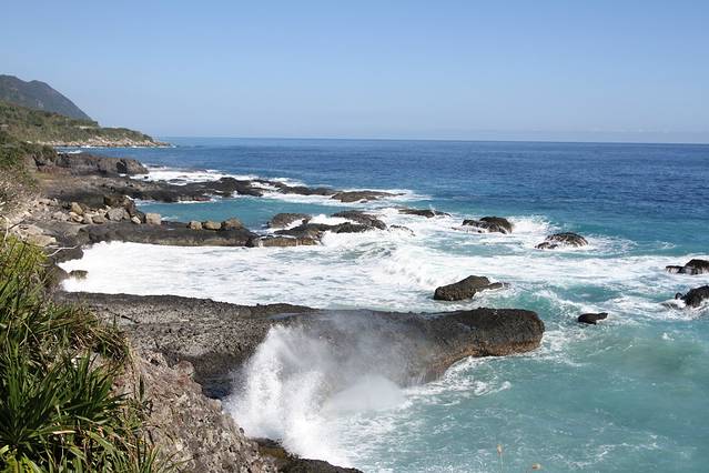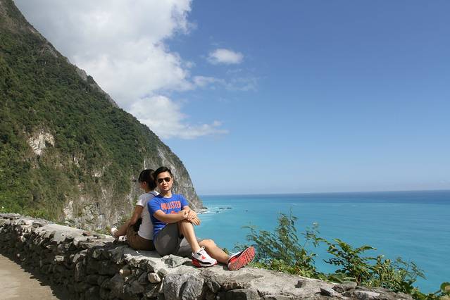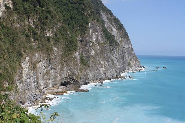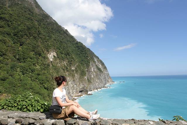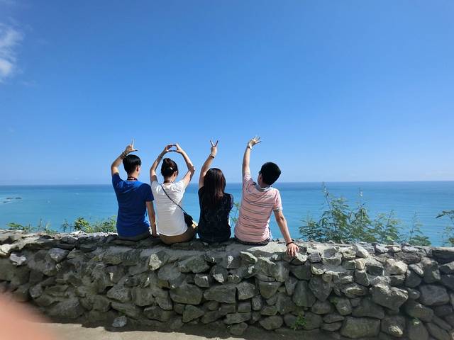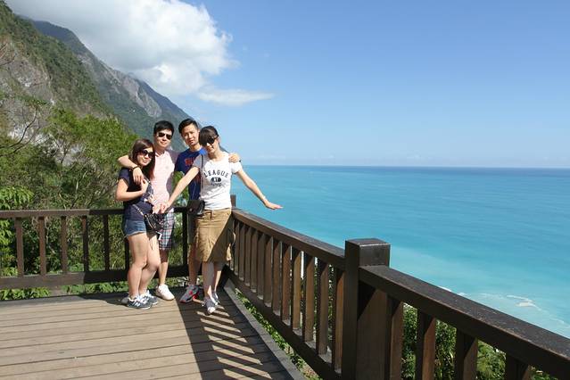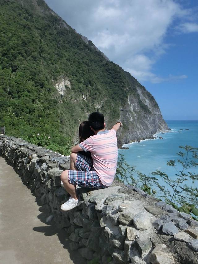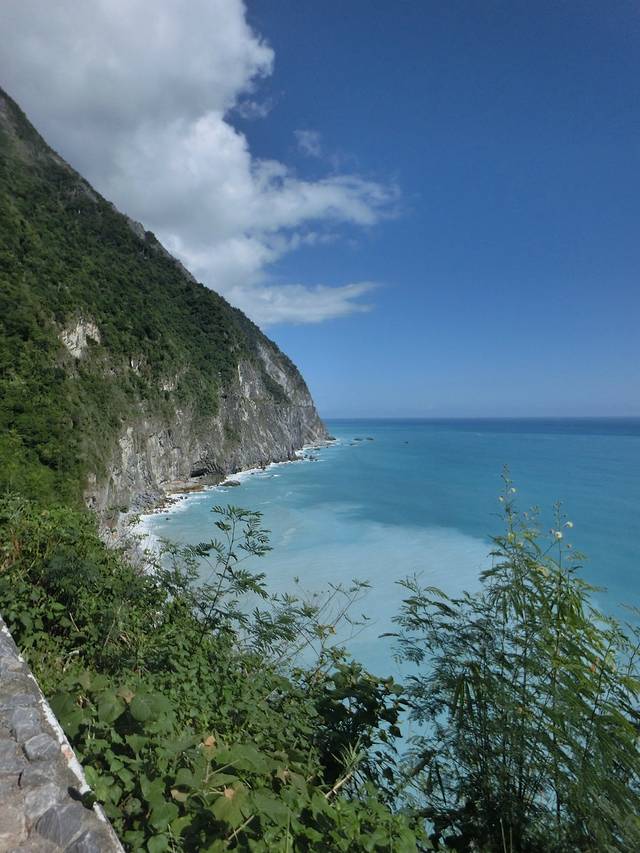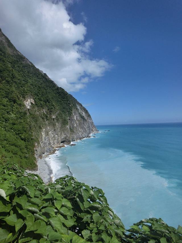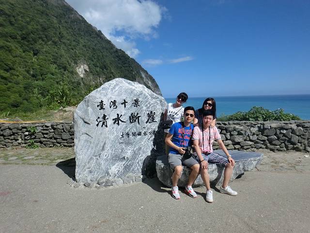 早上8点起床吃早饭,这里的早饭是台湾行中最好吃的,嘻嘻。10点包车师傅彭师傅准时来接我们,师傅是慢热型的,刚开始脸绷着,说话也是问一句答一句,渐渐地就我们打成一片,还给我们看他微信中以前客人拍的照片,介绍了好多七星潭、清水断崖、太鲁阁的历史故事和名字由来,彭师傅是位残疾人士,年轻时因为骑机车造成左腿残疾,但他很乐观,也算开朗的。我们第一站还是七星潭,白天的七星潭景色比傍晚的要美,就是太阳晒的有点热,接着去了清水断崖,高山断崖直接连着太平洋,山上的公路是人工开凿出来的,感叹!余下的时间就进入太鲁阁国家公园了,整个公园其实非常大,庆幸有包车,师傅带我们去一个个景点,告诉我们哪里可以下去沿步道走一段,哪里有好看的风景拍照,历史故事等等,中午带我们去吃午餐,本以为就一把的旅游餐,没想到味道还真不错,和国内的一些没法比。等到最后下山时已经5点了,天色也暗了,师傅直接送我们到自强夜市,还特意提醒我们要吃水果去市场里买,又新鲜又便宜,夜市里切好的一般较贵,整个一天的包车费用是2800新台币(清水断崖+太鲁阁),如不去清水断崖可以便宜300新台币,个人感觉还是很超值,既有包车又有导游。因为和彭师傅相处的很愉快,所以明天的包车去垦丁也决定用他的车,而且他的价格也是最便宜的。(彭师傅6500新台币,昨天的taxi师傅6800新台币,民宿报价8000新台币)晚饭就在自强夜市解决了,第一烧烤、棺材板、大牛排,统统打包回家吃,四人边吃边麻将哈哈!