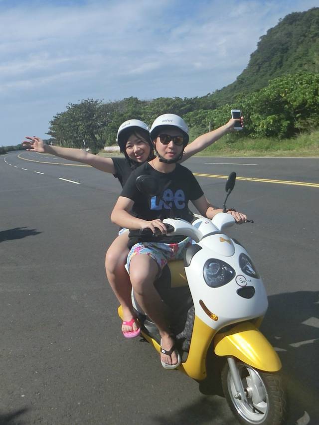 早上睡到自然醒,去傍边的7/11解决了早餐,行李整理好放在房间,老板娘会帮我们换房。门口停着我们的小电驴,熊猫造型的,很可爱,带上头盔趁着美丽的天气,出发咯。沿着岛上公路,先后去了鹅銮鼻灯塔(门票40新台币,青壮卡打对折)、台湾最南点、磐龙草原、分吹沙、恒春古城。由于下午天气有点变化,起风了,所以佳乐水没去,不过回到民宿也已经天黑了,休整后骑车直奔垦丁大街,又是大吃乱吃一顿,哈哈