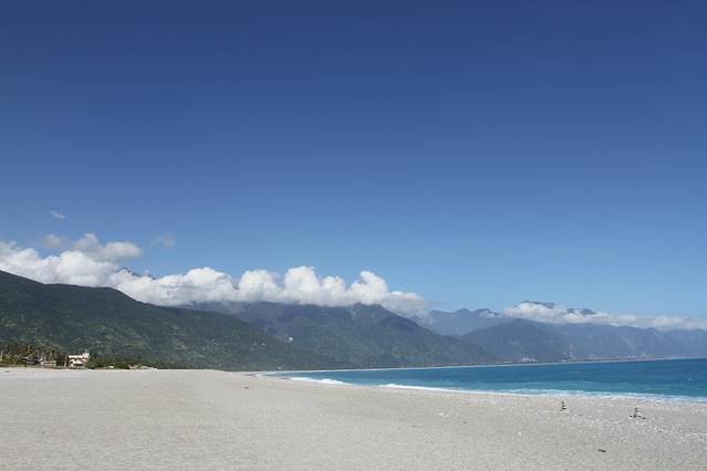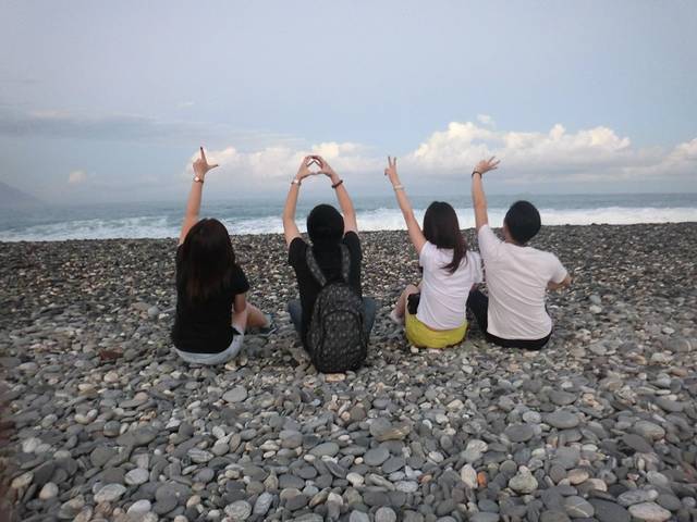 早上民宿老板为我们准备了营养早餐,吃完后就开始整理行李,11点下楼退房,火车是12点的,老板帮我们叫了出租车,其实在吃早饭时就可以跟老板预订,这样比较保险。不到2个小时我们就到了花莲车站,路上领略了左边大海右边高山的美景,泛水凌山民宿按照事先约定有派员工来接站,大概10分钟左右就到了,民宿被茂盛的植物包围着,很有田园味道,房间也很赞,我们是卧室在小阁楼上的房间,Kim他们是屋顶有天窗的星星房,接着询问了民宿员工一些游玩信息和包车信息,预订了明天太鲁阁一日游玩的包车(价格和网上查过差不多),还咨询了后天离开包车去垦丁的价格作参考,民宿员工给了我们当地和他们合作的taxi电话信息,坐车有优惠,去市区一般150元,后来事实证明这是很有用的,我们有次自己打车回来司机居然绕路,贵了50%且投诉无门。一切准备好就出发去了花莲市区,吃了中正包子、西瓜大王,还做了个台式按摩,从没想到捏个脚能捏的这么疼,不过结束后感觉脚好轻。时间还早我们打车去七星潭看黄昏,taxi师傅带我们去吃了炸弹葱油饼,提醒一下,一定要师傅打电话去订,然后让师傅去拿,钱给他,自己去的话要排很长队。大概15分钟车程就到七星潭了,路上师傅还和我们介绍了下七星潭的历史,我们也趁机询问了包车去垦丁的价格,(和民宿那边比较一下)半个小时的七星潭拍照时间后师傅又载我们去当地的一个有名餐厅,老槐树餐厅,餐厅就建在一个百年老槐树边上,味道还不错,吃完步行至中正路,逛了下市中心的中山路,逛完打车回民宿。和老板确认了明天的包车后就洗洗睡觉了。