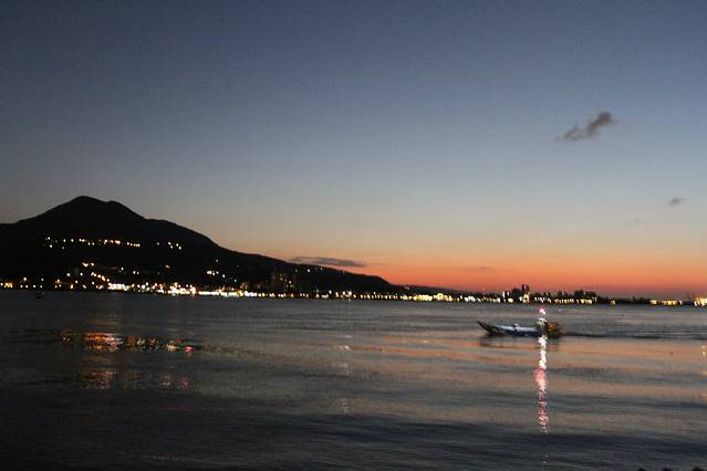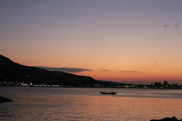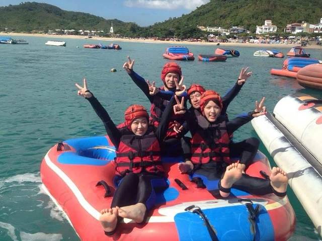 垦丁的节奏就是自然醒,哈哈。早饭还是7/11,今天的计划线路是另外一边,第一站南湾,南湾是一个水上项目集中地,看了价格后绝对玩个3合1项目,每个人才700新台币。换好商家提供的水母服后我们就开始了,第一个项目2位女生躺前排,3位男生站后排(搭了一位东北游客一起),摩托艇拉动我们的充气筏,速度起来后在大幅度转弯时,我好几次差点被甩出去,手紧紧抓着把手,但最后还是被甩到海里,海水很咸,众人一起把我拉上筏,不用担心,我们都有穿救生衣。教练提示:感觉要被甩出去就放手,不用拼命拉住,以免手臂拉伤,摔进海里没有事的。第二个甜甜圈幸好是坐着的,因为手臂已经在前一个项目里用力过猛,麻掉了。甜甜圈个人感觉最刺激,强大的离心力把我们紧贴海面急驶,某位女生叫得像杀猪一样,笑死我们了。最后就是教练带我们2人一队的摩托艇,迎着浪冲上天的感觉最棒,3个项目总共差不多20多分钟,感觉还是超值的,就是手臂已经没劲了。冲了澡之后我们继续前进,目标后壁湖,那里有海鲜等着我们,大约半小时后终于找到了,后壁湖是个渔港,很多鱼商自己有很大冰库,所以渔获捕上来后直接进冰库保鲜,本来是想吃著名的辉哥生鱼,但不知道为什么没开门,所以就到了第二家,里面有很多人在吃,点了大份生鱼片,生蚝、大虾、扇贝等等,但味道没想象中这么好,而且除生鱼片外价格其实不便宜,所以建议大家其它的可以少吃点,生鱼片可以多吃,100新台币小份,200新台币大份,由三文鱼、鲷鱼、飞鱼组成。饭包后去了白沙湾,据说是少年派漂流的取景地。趁太阳还没下山,骑回民宿,休息了一下,晚上依旧垦丁大街觅食,回到民宿,向老板确认了明天拼车去高雄左营车站,350新台币/人。假期进入尾声了。