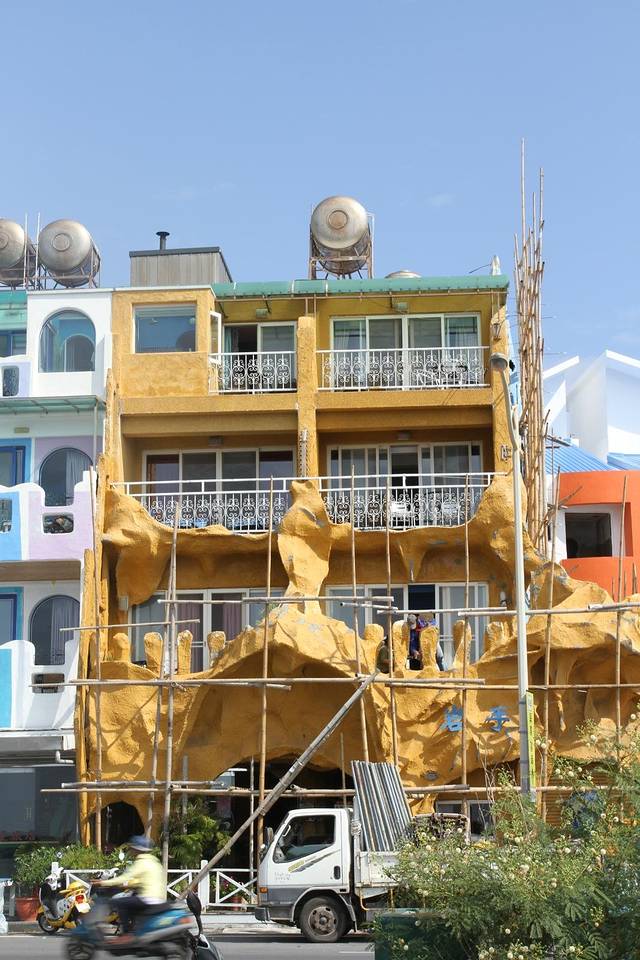 我们的民宿,外墙在粉刷,我们的新房间在顶层靠左,Kim他们的在2楼靠右