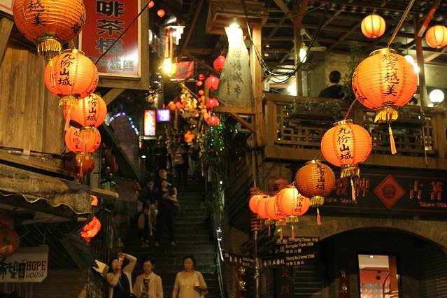 早上10点退房,存了几件不用的行李,里面都是这些天买的东西和上海带来的厚衣物,步行至西门捷运站,坐到台北车站,自动售票机上买了去瑞芳的车票,半个小时后就到了瑞芳车站,第一件事买明天去花莲的车票,把车次微信给花莲民宿老板,他们有免费接站。打车直接去民宿,打车点标示有统一价格,去九份180新台币,和司机谈妥直接送我们到民宿门口200新台币。十几分钟后我们就到了民宿,阳光味宿,因为还没到时间办理入住,就先存了行李,直奔九份老街,往上爬台阶约10分钟左右就到了,老街吃的、小商品、纪念品应有尽有。下午朋友去了十分放天灯,我和老婆在房间睡了下午觉,晚上去寻找动漫《千与千寻》的灯笼台阶,吃了好多好吃的。