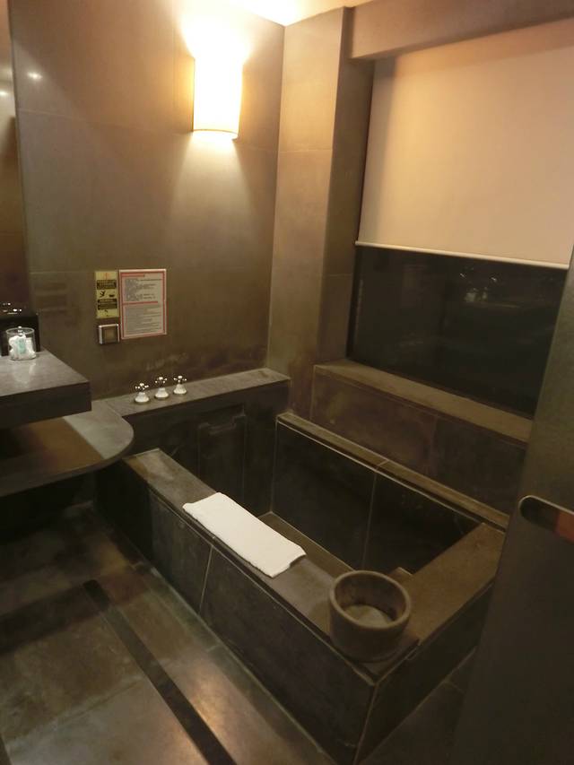 北投春天温泉酒店,房间自带温泉哦,中间那个龙头拧开是温泉水哦,有股硫磺味