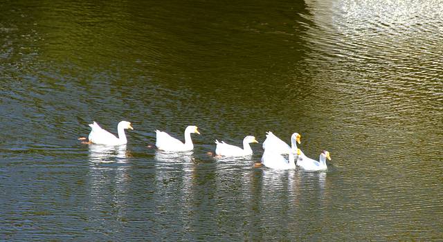这是鹅吧,在自由的游泳。