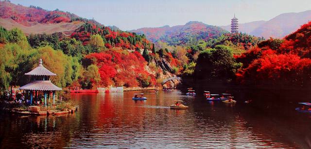 这就是红叶谷的大门。走上去会有一个观景平台,可以看到景区的概貌。