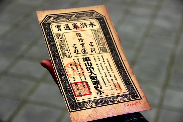 这门票倒是很有特点的,“梁山泊大聚义告示”,很有特点,要聚集梁山好汉啊,来的都是好汉,大碗喝酒,大口吃肉!