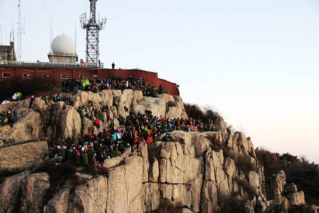 2、就是山顶很冷,带个厚的羽绒服!爬山途中挺热的啦,不会觉得冷,一旦停下来,就很冷,所以要保持好节奏!到山顶实在太冷,就租个军大衣,也不是很贵!看日出的人老多了,去迟了都没有好的位置,我是在日观峰看的日出,感觉还不错!