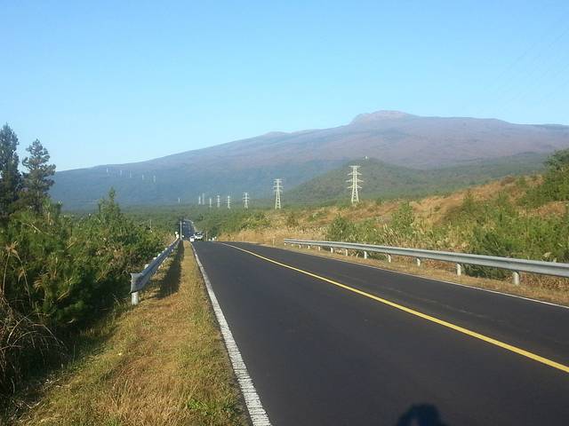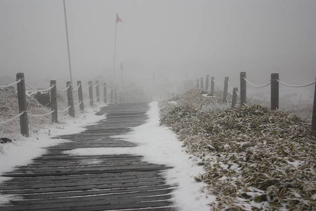 这一天,是我一年以来感觉最幸运的一天!有种被幸运女神敲门的感觉。我遇上了济州岛的第一场雪。原本是没有打算去爬山的。可是男朋友说,去北京不到长城非好汉,来了济州岛怎么得也得去趟汉拿山呀。于是原本得南部线路,和导游稍微商量一下做了修改。我们先直接奔向了汉拿山。