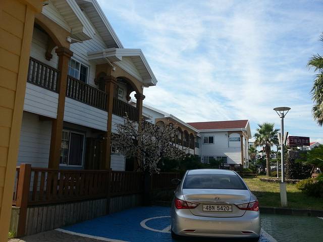 济州机场到达,直接打车去了预定的酒店--画样度假村酒店,很近,起步价多一点,好像是3000韩币吧.司机大叔看着我们给他的地址,二话不说就出发了。