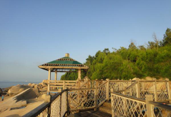 这里是木栈道在塔头附近的尽头 很惊喜啊~ 看完日出发现木栈道就在我们边上,于是我们就沿着它走到了下一个站点:台湾民俗村。准备从那里坐车去厦门。在厦门坐公交很方便,特别是那些有名的站点可以到达的车特别多。所以不用害怕找不到车,去站牌那里直接看看就好,而且基本票价一块钱。