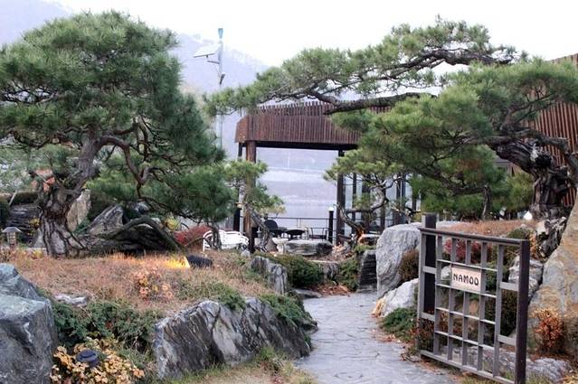 我们驱车从首尔出发1个半小时才到达京畿道杨平郡“餐厅部落”,首先扑入眼帘的是清澈的河水和穿着朴素绿色外套的松树, 还有清新的空气。这好像都是都市人向往吧??