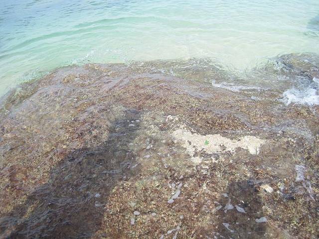 礁石,在这里可以涮脚丫,把沙子都冲走