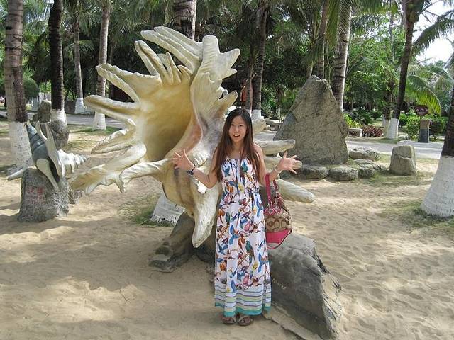 岛上有好多海螺的塑像,看看我像不像一个“螺精”