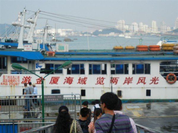 坐着当地人的轮渡码头的轮船去鼓浪屿~