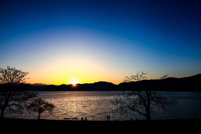 那个女孩每天,在太阳升起的时候,便坐在泸沽湖旁等待,明眸闪烁,期望得没有边际的远方,翘首盼望他的归期。