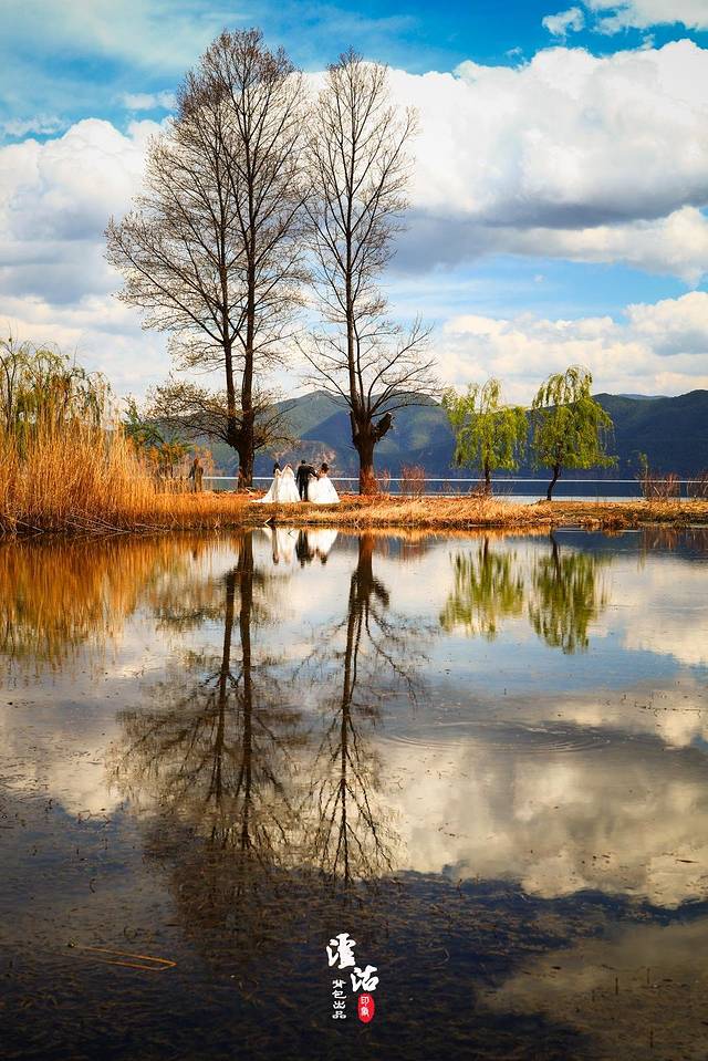 在草海吃完早饭,我们就开始了今天的环湖婚纱之旅