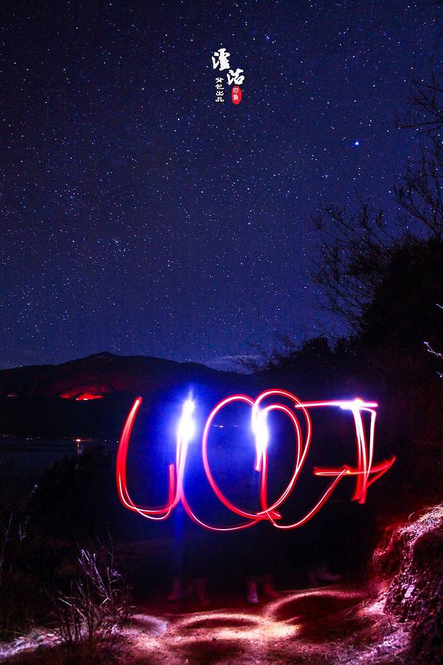 春天的晚上其实并不冷,特别是上半夜,只是这个季节的天空上半夜是看不见银河的,只能看见繁星点点,我们的运气比较好,看到了好多颗流星划过我们的头顶。拍不到银河,我们就玩光绘。