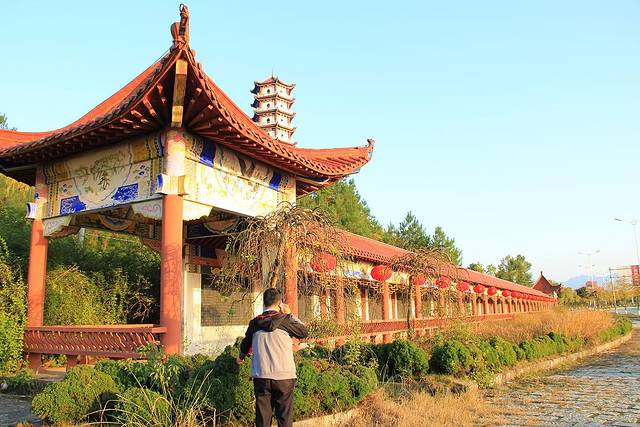 塔下的一长亭,很美,这个人挡着我的美景啦,这衣服,很像顺丰快递的,哈哈,其实是团友啦,不认识