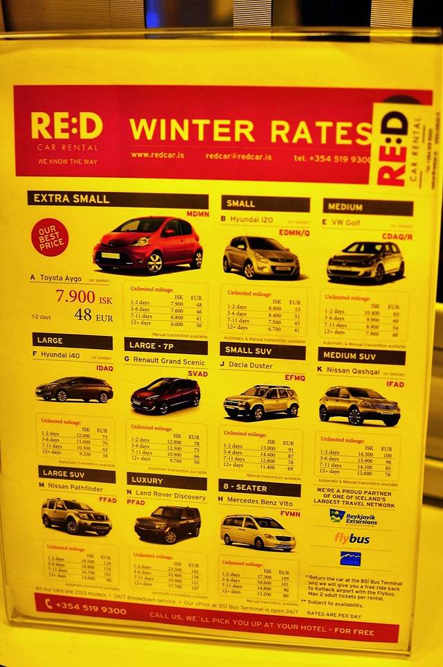 在欧洲各国辗转一直使用的是ryanair航空,很多国家游走的时候需要自驾才可以更好的获得旅行体验,Hertz是Ryanair的合作伙伴,每次预定好机票之后都会提供租车的优惠通知,久而久之也对Hertz产生了莫名的好感,虽然到达雷克雅未克并没有搭乘Ryanair的航班,但凭着老交情还是租了Hertz家的小车,最便宜的丰田每天租车费用40欧大概。常见的租车公司例如budget等也有,当地有个冰岛的租车公司RE:D,感觉价格也还算不错的,稍微推荐一下