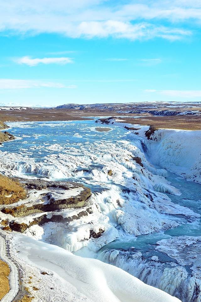 3月初的黄金瀑布已经被冻上大半,缝隙间留下的雪水令有种美感