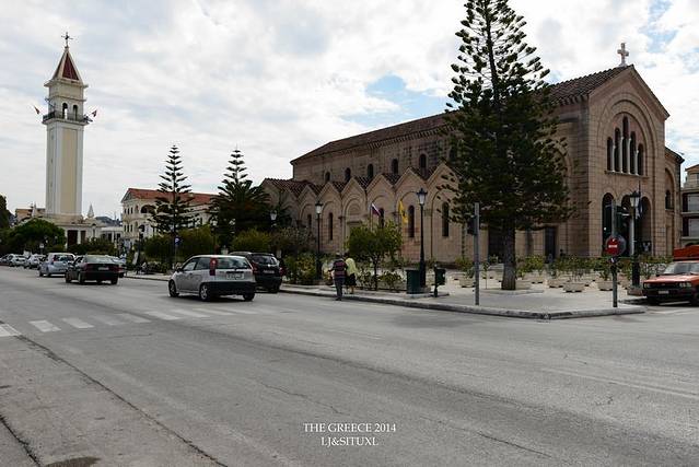 我们开始闲逛扎金索斯镇,本着探索这个小镇的目的,我们步行前往寻找扎金索斯的大教堂,由于我看错了地图,所以一直朝着错误的方向走着,走了很远很远,终于发现迷路了。问了一位当地人,他告诉我们,已经离开了镇中心很远了,应该朝另一个方向走。真是难为我的儿子了,烈日当空的和我们走了那么久,但他一点抱怨都没有。那位路人看见我们有老有少的,说:“这里离开了镇中心,不容易打车,如果你们不介意,我用车子送你们过去。”而最让我感动的是,由于车子不够位置,他放下了一位本应和他同行的老人家,让人家在原地等,回头再接。那一刻,我感动得除了不停说Thank you very much之外,真的不知道该说什么。他把我们带到目的地之后,我们给他车费,他还坚持分文不收。真的太感谢这位仁兄的仗义了。之后,我们参观了大教堂,在海边小镇上品尝地道希腊菜,一天就这样休闲地过了。