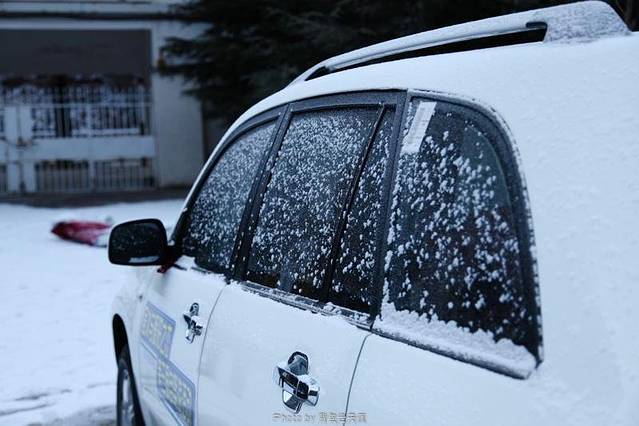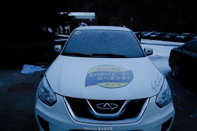 早上起来,天气大好,看了日照金山,汽车也铺了一层白白的雪。