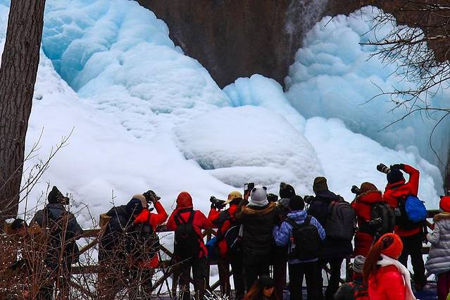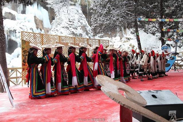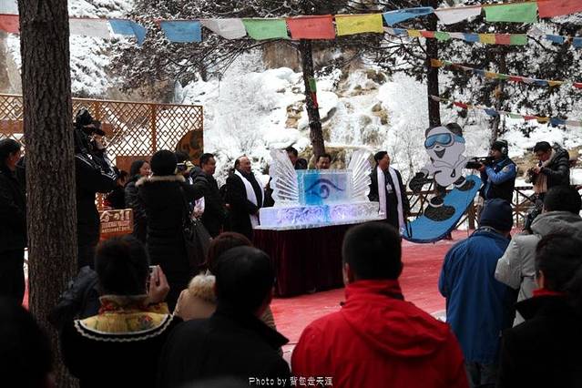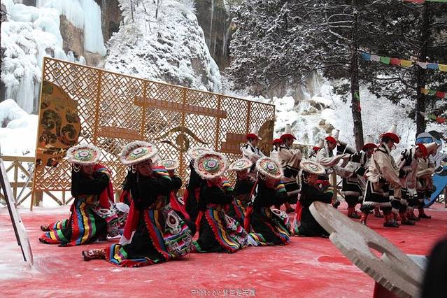 九寨沟冰瀑节的主会场就在珍珠滩瀑布,这里场地够大,不过蓝冰最漂亮的我觉得还是在诺日朗那边。