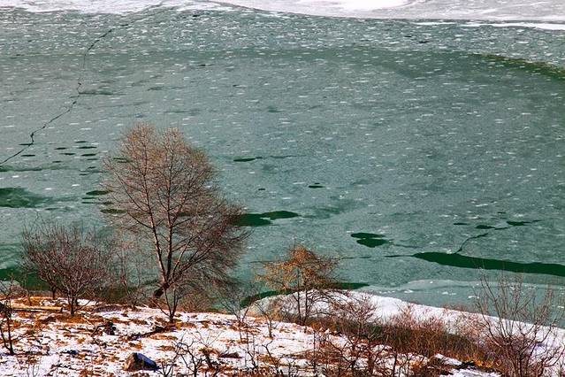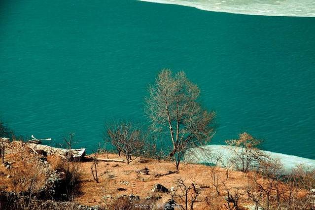 此时的叠溪海子大部分水面已经结冰了,对于目的地九寨沟的我们,这里仅仅是一个上厕所的地方。