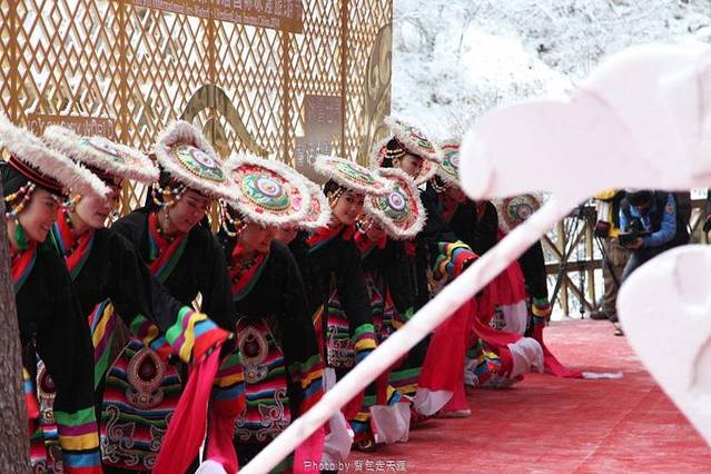 迎接我们车队的是热情的羌族姑娘,每人上前就是一杯香醇的青稞酒。