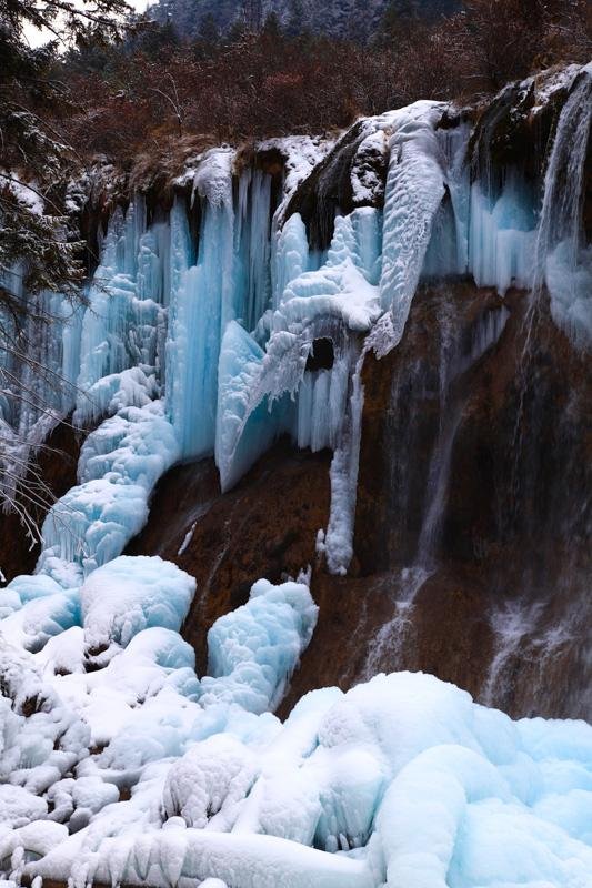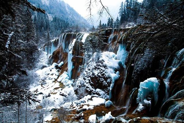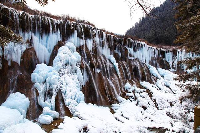 九寨沟的冰瀑比较大的有三处: 珍珠滩瀑布,诺日朗瀑布,树正瀑布