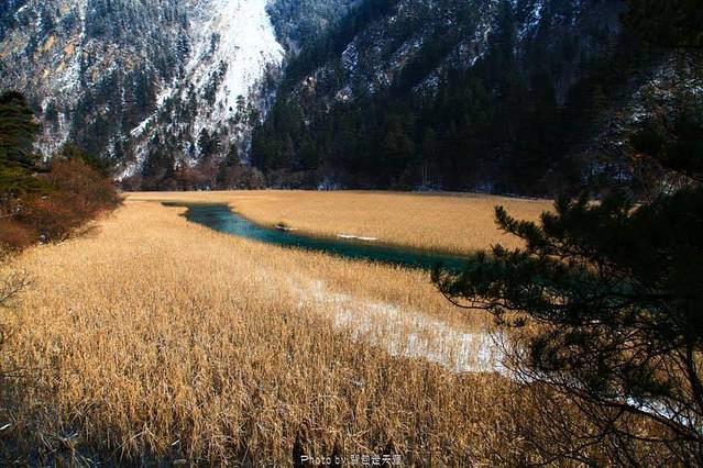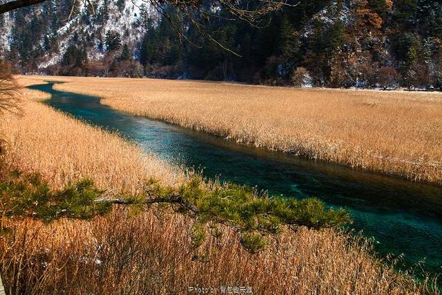 因为树正沟的海拔较低,所以冬天色彩依然很丰富,可以找到秋天的影子。