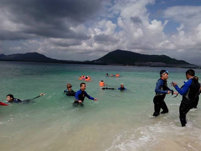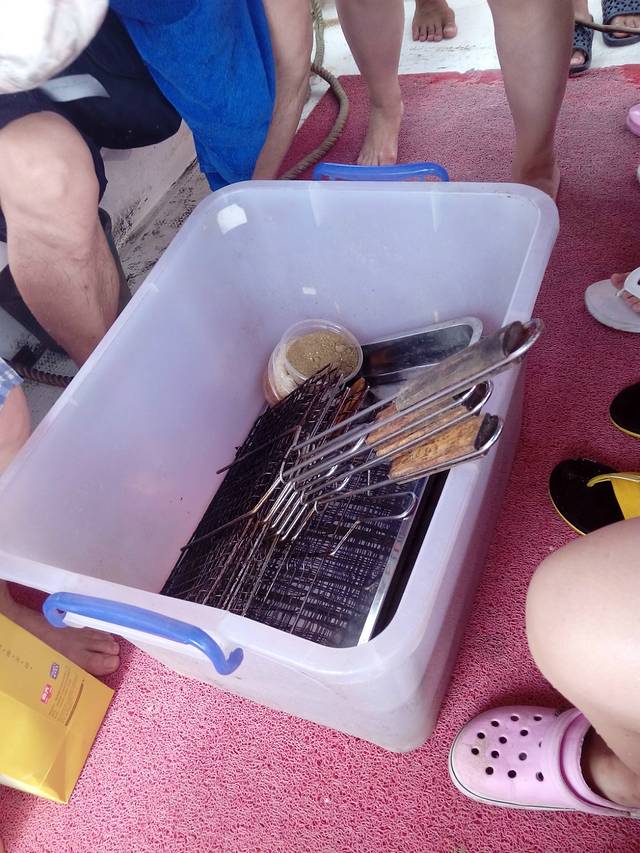 加井岛果然很原始,连换衣服的地方都没有,上个洗手间还得找树洞解决,破渔船乘风破浪真刺激,中餐都是附近的村民做好运上岛的,尽管很简单,但是又是浮潜又是深潜的我们真是饿坏了,老公不要脸的加了三次饭,晚上的烟花篝火晚会还没玩尽兴,朋友们都说这才是真正感觉像上了个荒岛,虽然条件很恶劣,但是还是很值得体验的。