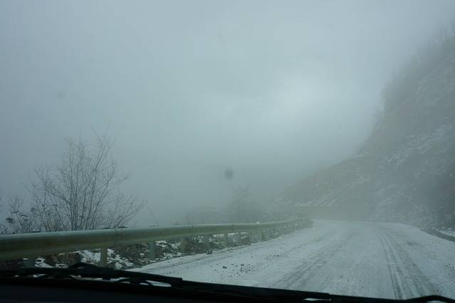 只是下雪时,路特别滑,山路中时速20左右,有几次还感觉到了车打滑。因此导致回程时间变长。到山下就变成了下雨。