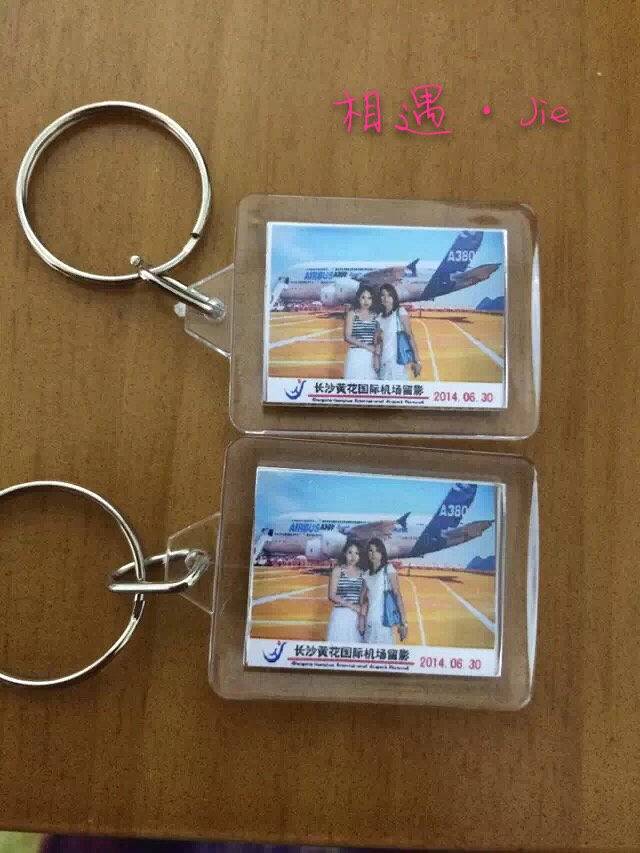 飞机✈️经停长沙,在长沙机场发现照相📷的地方,说免费照钥匙扣,免费的当然我俩不能错过了,就去找了个合影,不料耽误了登机,被机场工作人员点名,好丢人啊!