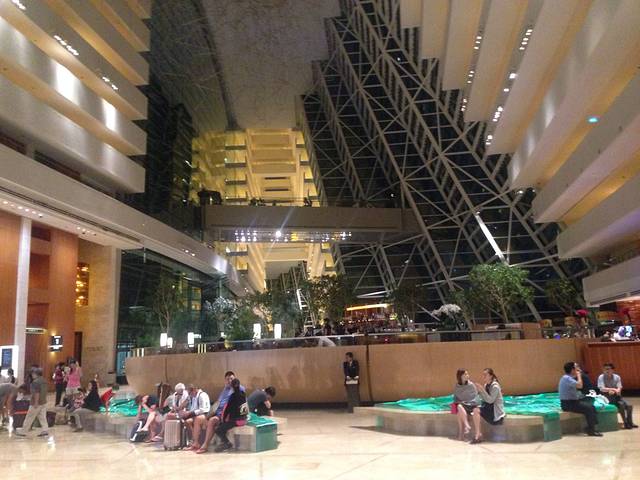 抵达机场后 在地下的transport desk有z酒店的柜台他会告诉你在哪等专车来接。到达后我们第一天已经晚上了所以去了滨海湾金沙也就是CBD 金沙是赌场酒店新加坡标志性建筑。在那就可以看到小鱼尾狮。