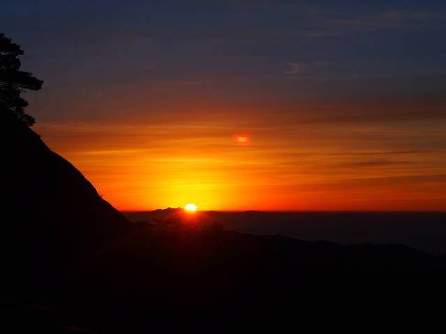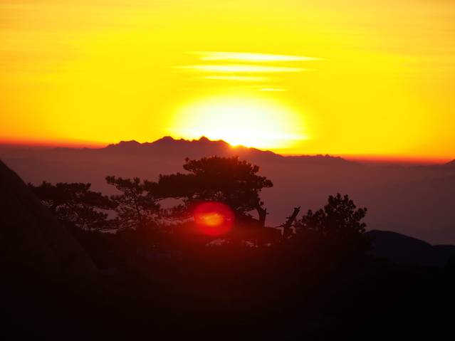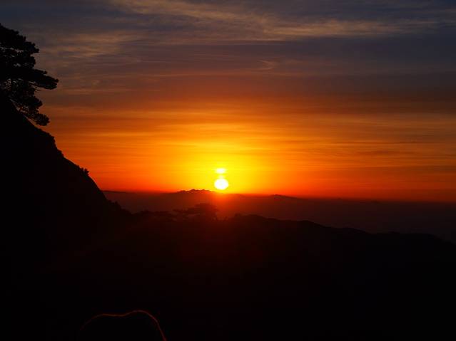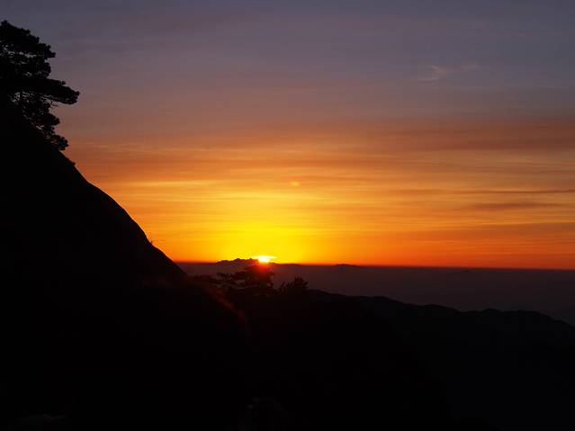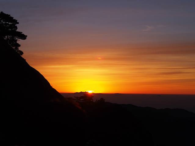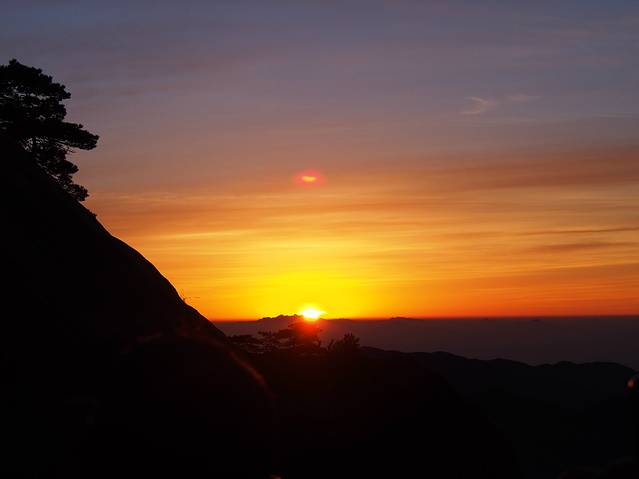 早上在气象台下的炼丹峰上看到的日出过程,短短2-3分钟,花了两个小时的准备、1个小时的等待,值得!(下山路上听修建气象台的工人说了一句经典:日出像是狐狸精啊,勾引了这么多人为它痴迷不醒!)