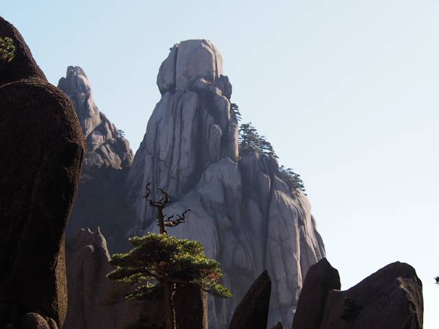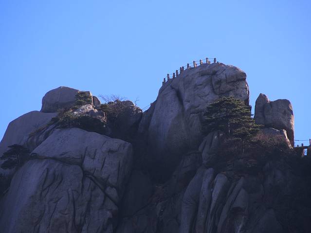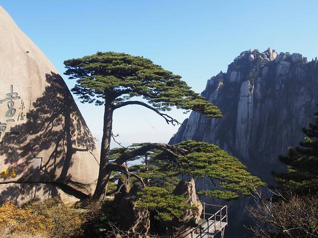 著名的迎客松,周围围满了留影的人,只有这个角度还好点,但不是最佳。