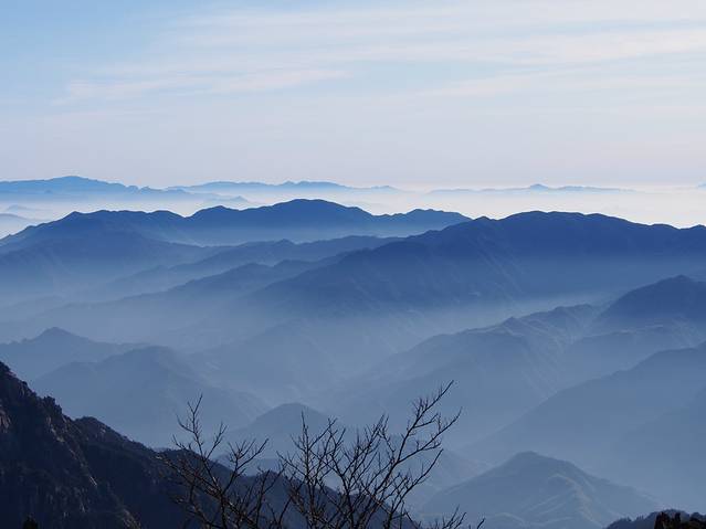 光明顶观看的黄山、云海