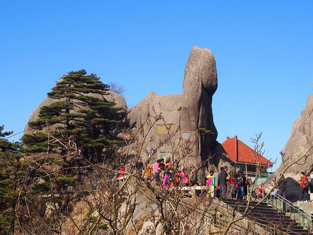 天都峰2014年轮休结束,开始接纳游人,但每年12.1到第二年3.31日封闭。今天只能远远看看了。