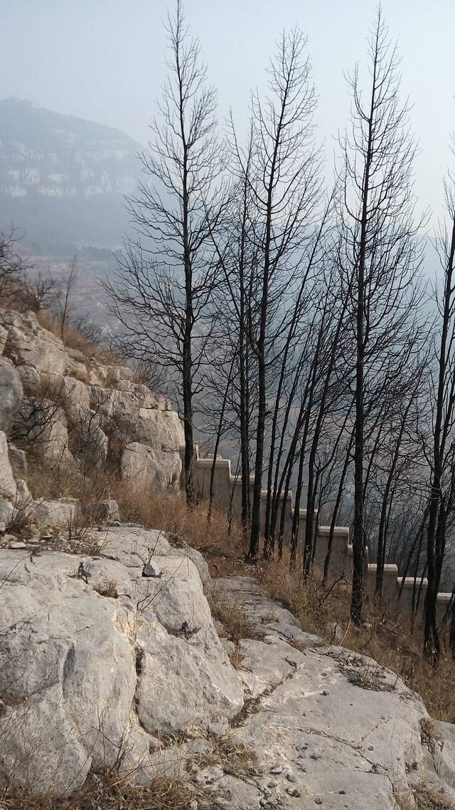 沿着整修的山道爬上一座山梁,沿山梁东行,到达胡山的西天门,依稀有残存的山门,石阶,当初规模必定宏伟。沿山路上行到达山顶,断瓦残垣遍布,杂草丛生,偶尔有几声鸟鸣。站在西侧平台下望,一片平台之上,散布着倾颓的建筑,事后知道那就是废弃的太平庄。 下山走山南侧,过东天门,保存较好,依稀可见当年的风貌。误打误撞,走进一片废旧的房屋,屋舍安然,四周静谧,只有枝上小鸟偶尔鸣叫,在诉说着什么。山下是一片采石场,尘土飞扬,渣土车横行无阻,大煞风景。 下山后,稍事休息,原路返回,美莲广场吃粥大幅,味道一般。困顿疲乏缠身。 心得:1、章丘人杰地灵,重视教育,偏僻的山村也保有文昌阁,据说还有几处保存较好。2太平庄历史遗迹较多,尤其是碑刻、水井等古迹,有较高的价值,也适宜摄影,雪后应该再来。