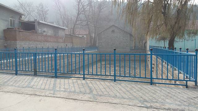 村里的蓄水池,已经结冰了