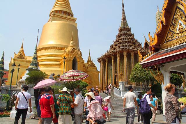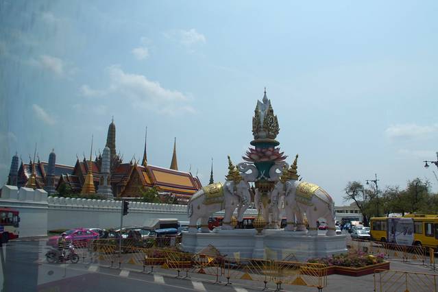 大皇宫(Grand Palace),相当于北京的故宫。一至八世国王在此办公、居住,当今国王因出了两件大事,华人看了风水,妄言此处不宜,已选址另建皇宫了。看来,风水在泰国大行其道。
