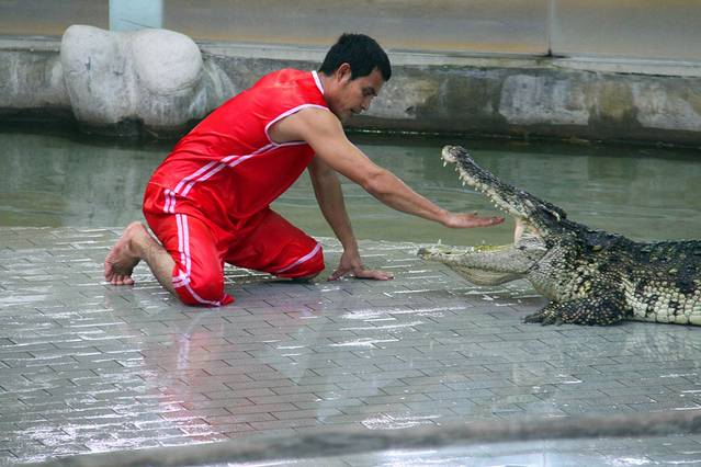 这回,导游鼓励女人们给买男人鳄鱼皮革,说什么要用皮带拴住男人的身。