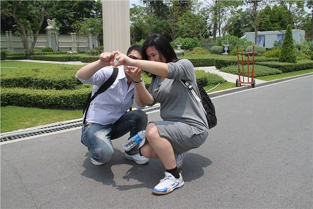 在大厦前但见一对情侣用手指拼成心形,男的很笨拙,女的教了他很久才勉强过关。旁边的保安见他们呆得太久,走过来驱赶。