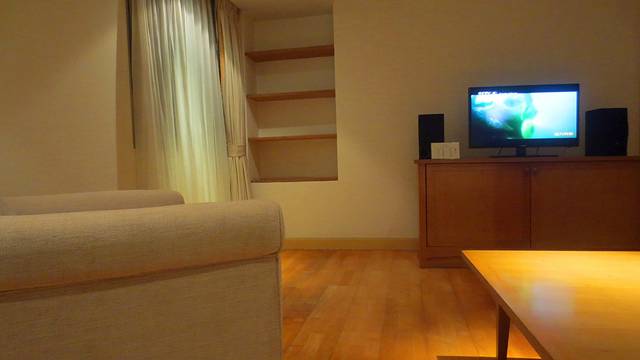 我们住的是套间,因为团里没有人愿选套间,套间里有2间房,须住4个人,当然没标间安静啰,但套间总得有人住呀。