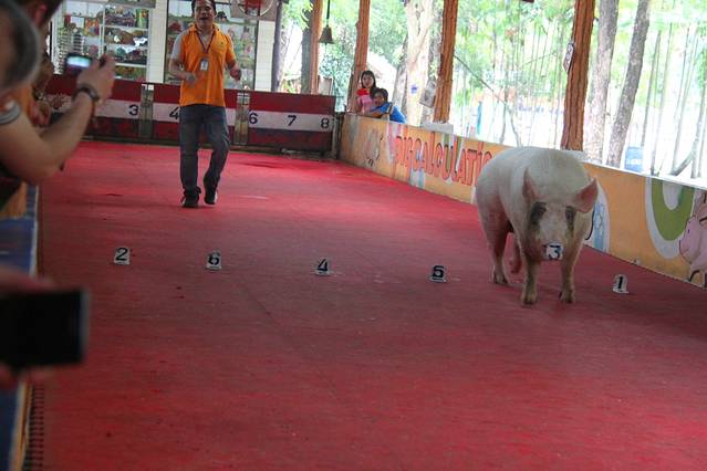 有趣的小猪赛跑,引来了观众的一片喝彩声。这是猪(珠)算法,加减乘,它都会。也不知是咋训练出来的,人家靠这手艺吃饭哩。
